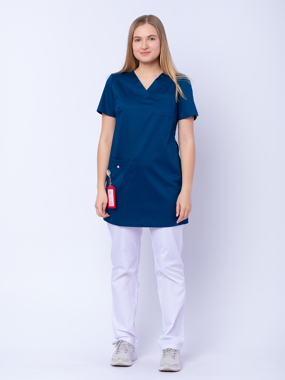 Удлинённая блуза «Лонга» с V - образным вырезом - отличный выбор для студентов медиков, медсестры, врача общей практики, лаборанта.
