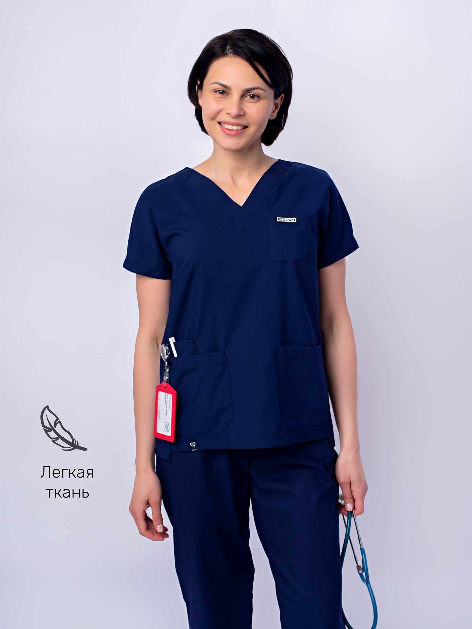 Медицинская блуза-топ женская "Нюша TREND", тёмно-синяя