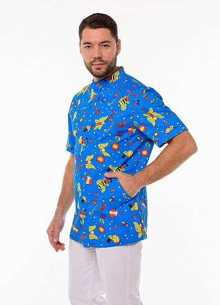 Медицинская блуза мужская "Педиатр М", синяя с рисунком SALE