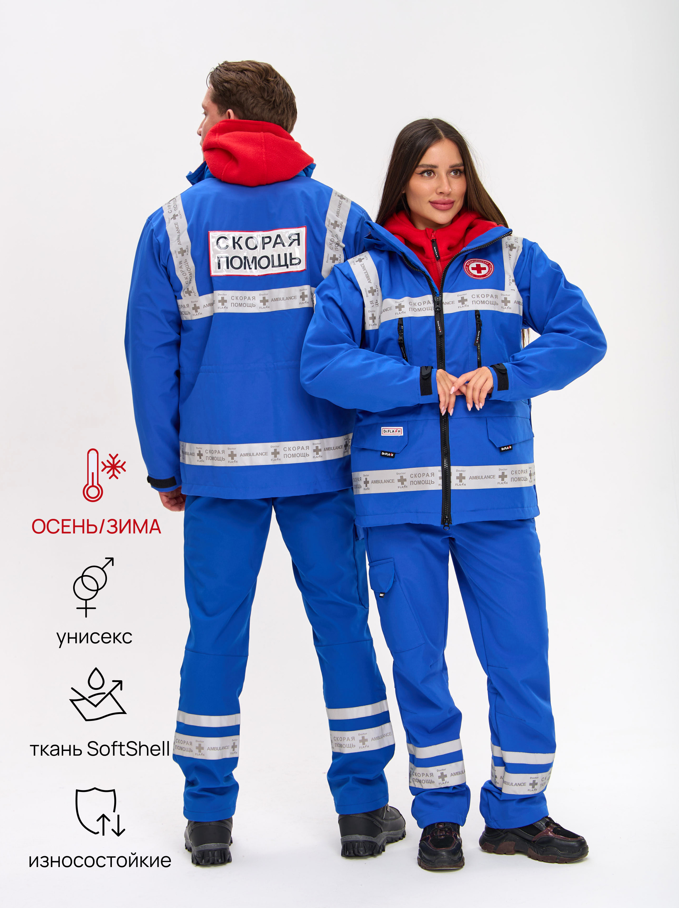 • Надпись на спине и шеврон на груди «Скорая помощь»